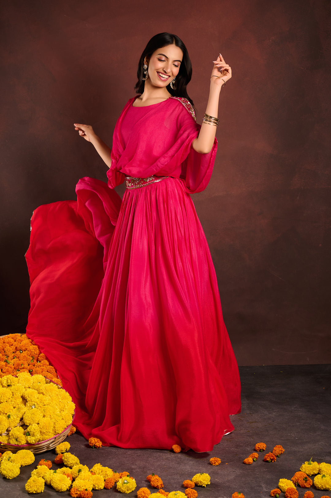 Two toned gown with cape