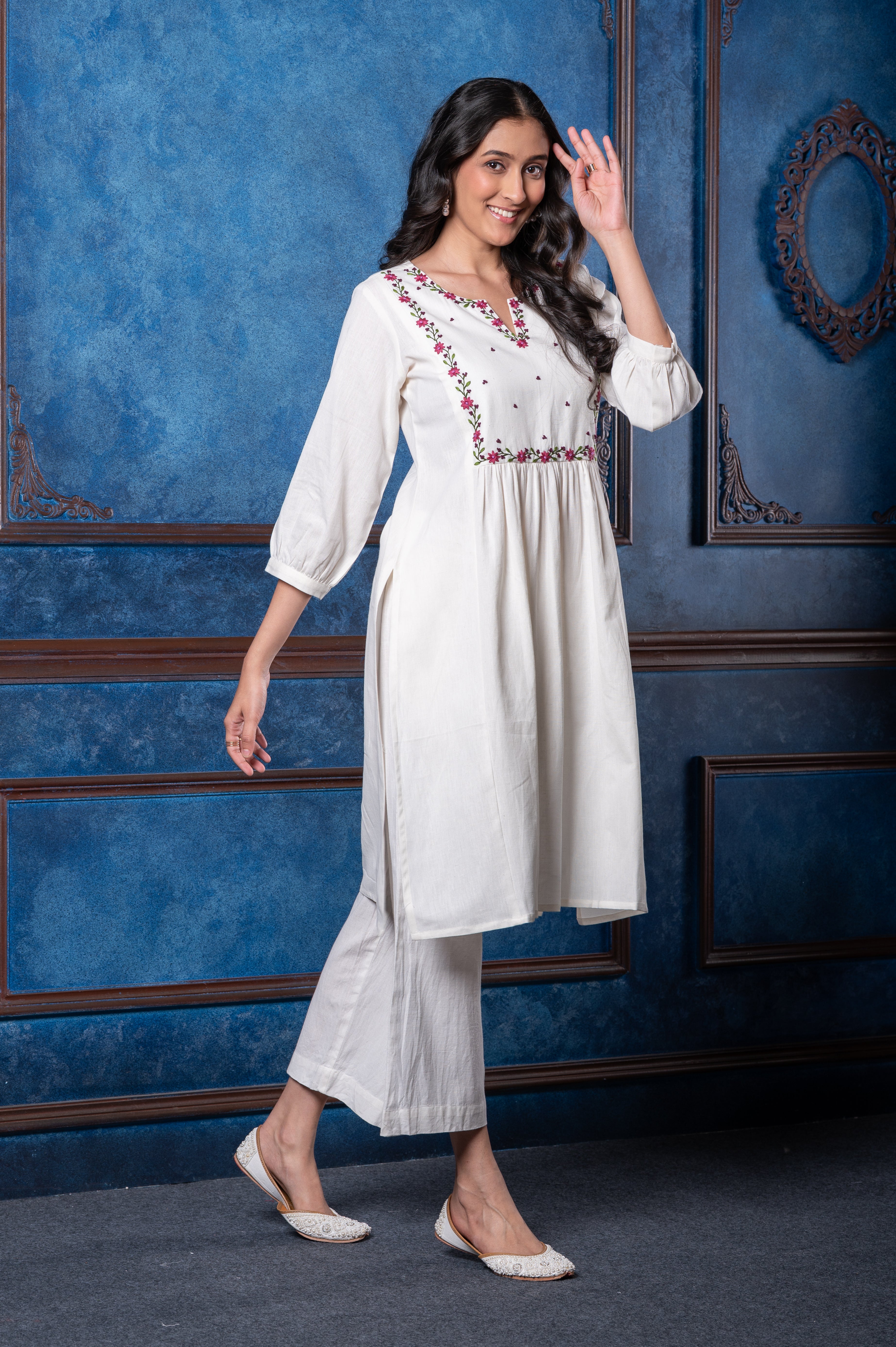 Elevate your everyday ethnic wear with this Women’s Cotton Flex Round Neck Kashmiri Hand-Embroidered Regular Fit Kurta-set, a perfect fusion of traditional artistry and modern practicality. Crafted from comfortable cotton flex fabric, this kurta ensures breathability and ease of wear, making it ideal for all-day comfort.