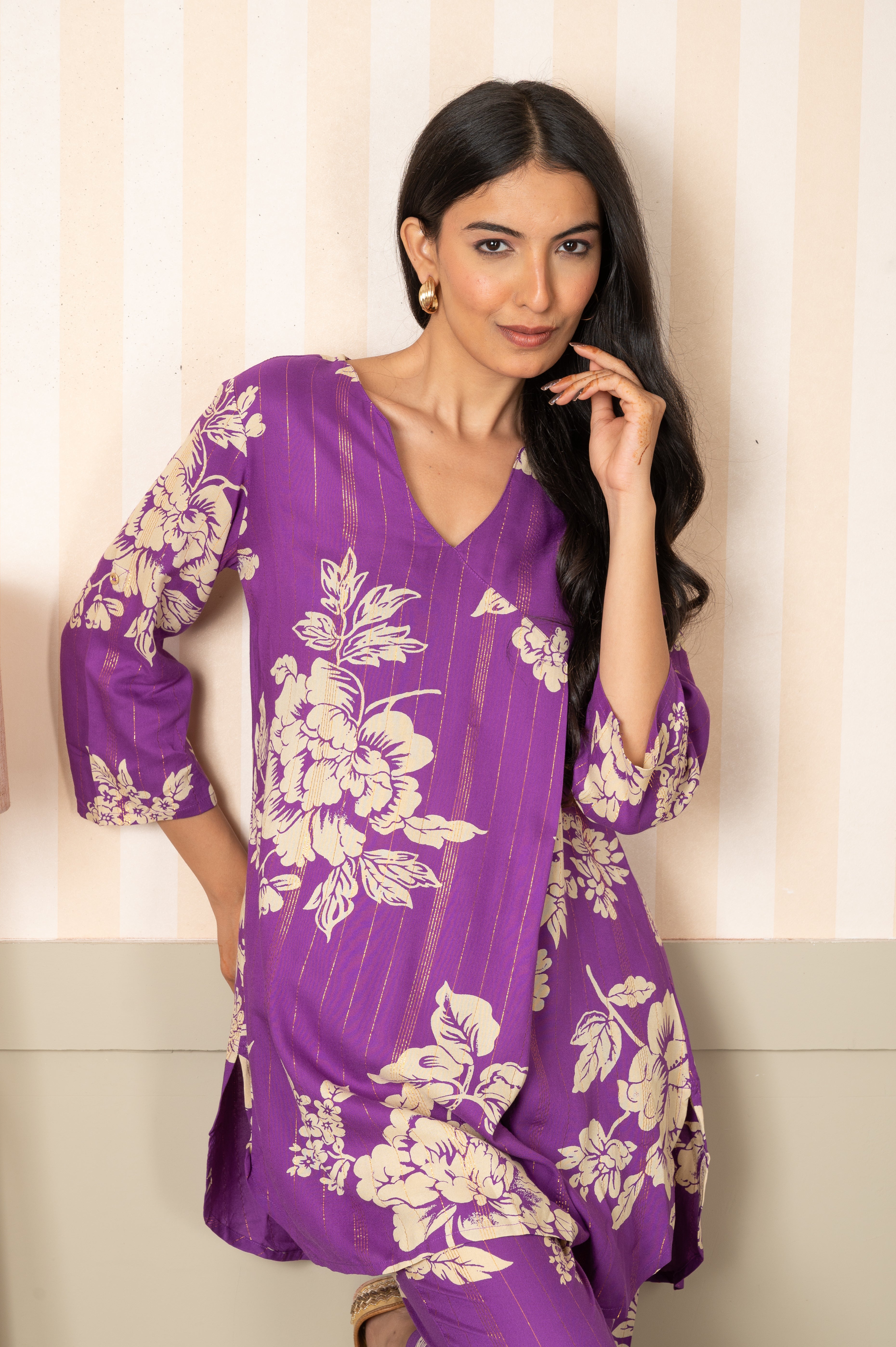 Soft, feminine, and effortlessly stylish — this kurta pant set features a charming floral pink print that adds a fresh touch to your everyday look. Crafted from breathable fabric, it’s perfect for daytime outings, casual gatherings, or relaxed festive moments. A timeless silhouette that blends comfort with graceful charm.