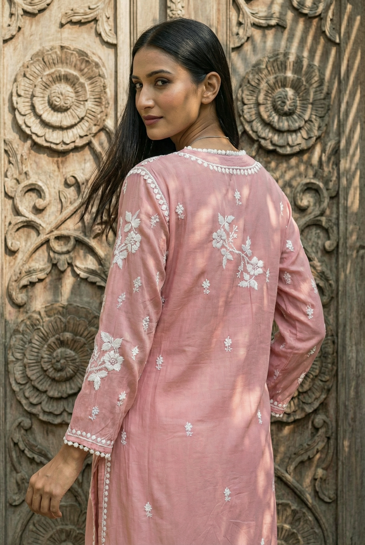 Dusky Brown Chikankari Cotton Silk Kurti